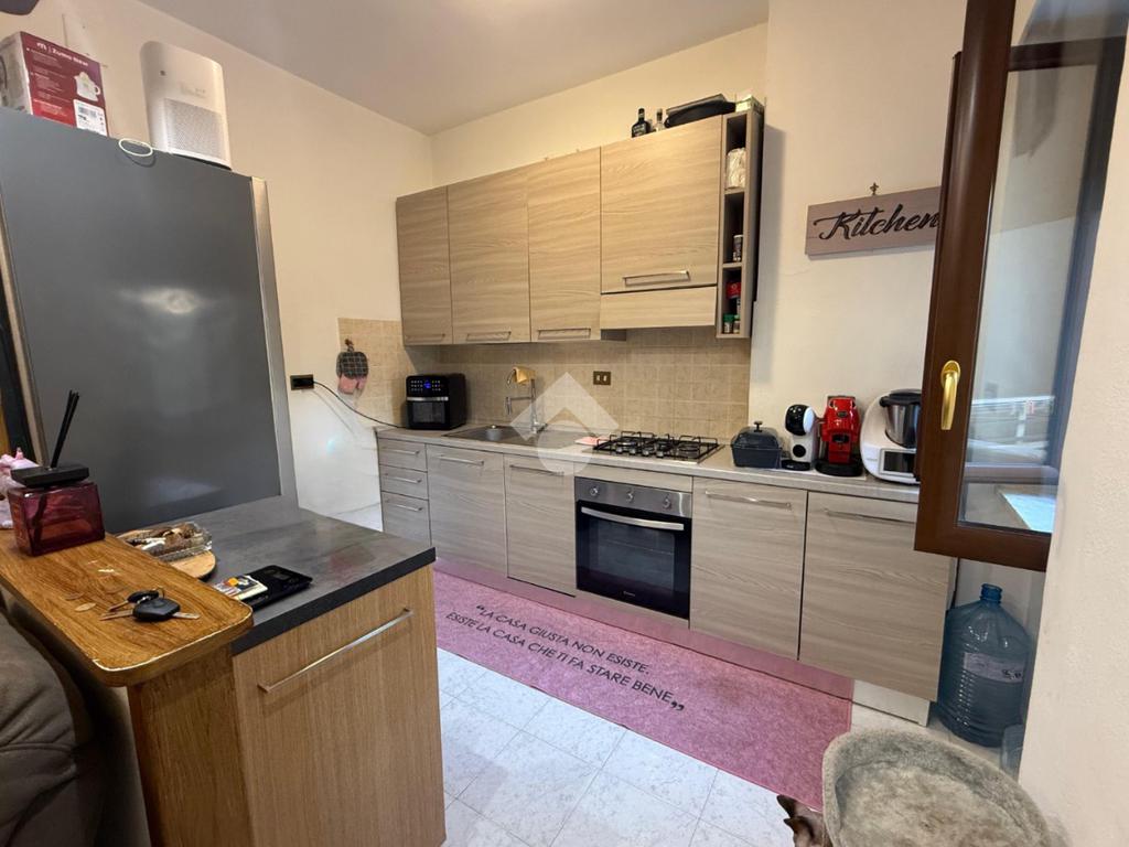 L'appartamento è posto ad un primo piano con ascensore, esso gode di un affaccio caratterizzato da finestre e terrazzino verandato e di una quadratura comoda anche per giovani coppie, in un buon contesto lontano dal caos cittadino.