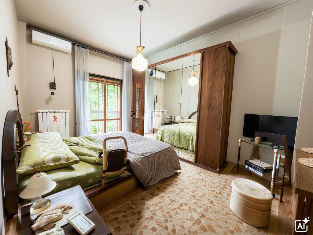 L'appartamento gode di doppio affaccio caratterizzato da un ampia balconata con affaccio interno parco ed un altro balcone con affaccio su strada.