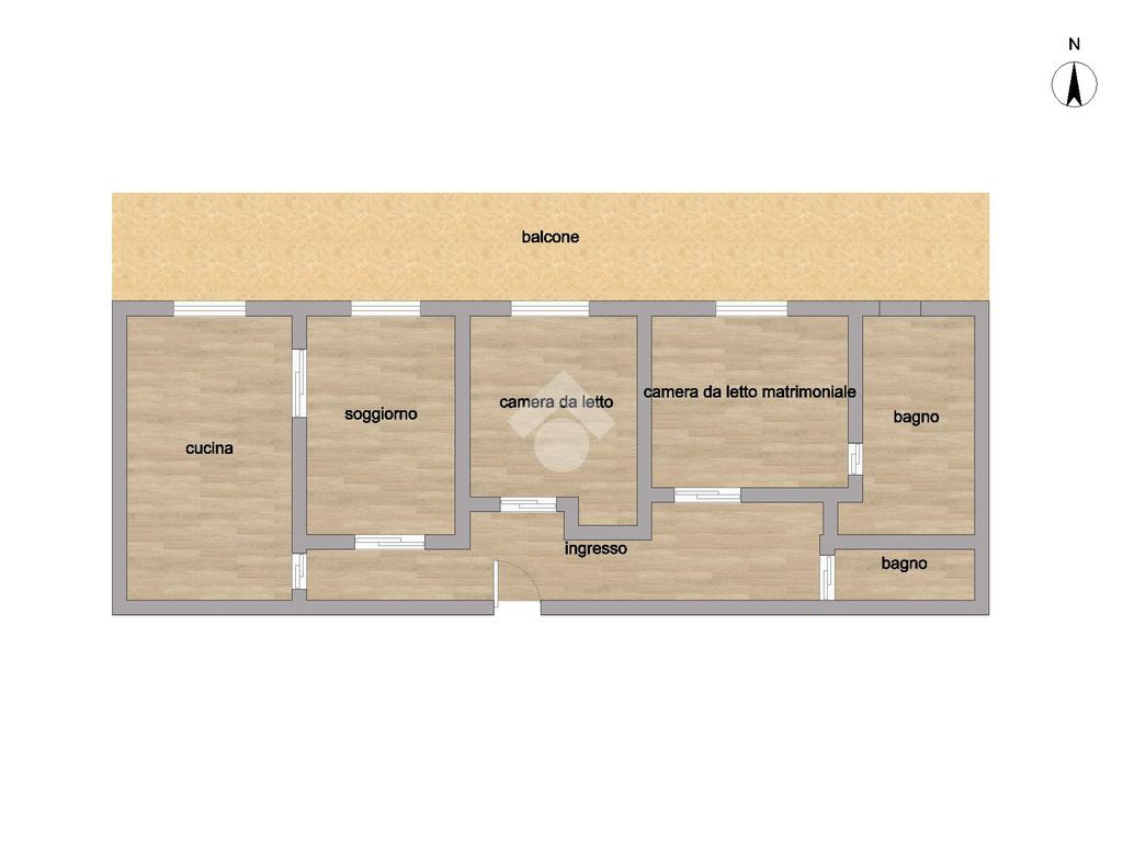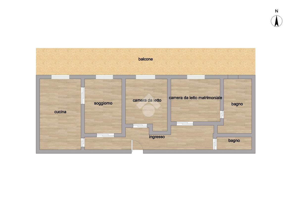 Il cespite, internamente è cosi composto: Ingresso con disimpegno e corridoio che da accesso a tutti gli ambienti; a sinistra vi è un'ampia cucina abitabile, soggiorno, due camere da letto di buona quadratura, di cui una con primo bagno, dotato di piatto doccia e finestra ed un secondo bagno dotato di vasca e aeratore;