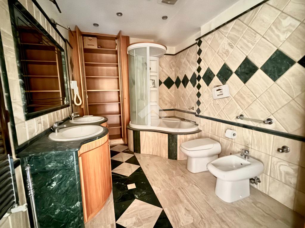 L'immobile in oggetto è situato all'interno di un parco ben curato caratterizzato da ampi spazi verdi, in stabile munito di ascensore e posto auto assegnato; la sua quadratura è di circa 100 mq escluse aree scoperte caratterizzate da un'ampia balconata con affaccio libero e soleggiato.